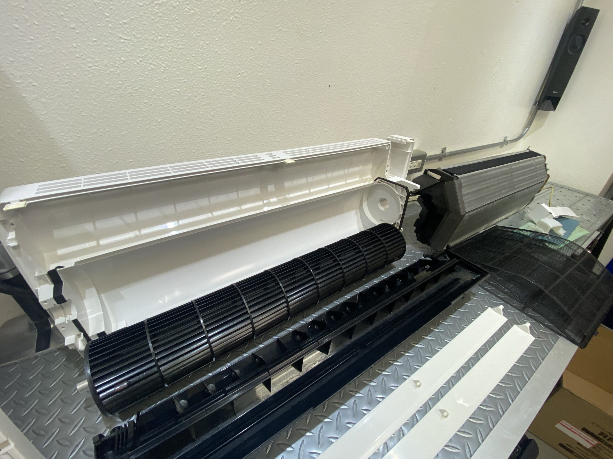 通常のクリーニングでは絶対に掃除できない、熱交換器の裏やドレンパンなど、通常の洗浄では落とせない部分も、つけ置き洗浄をした後、部品単位で全て手洗いにて洗浄できない部分が無いほど徹底洗浄します。