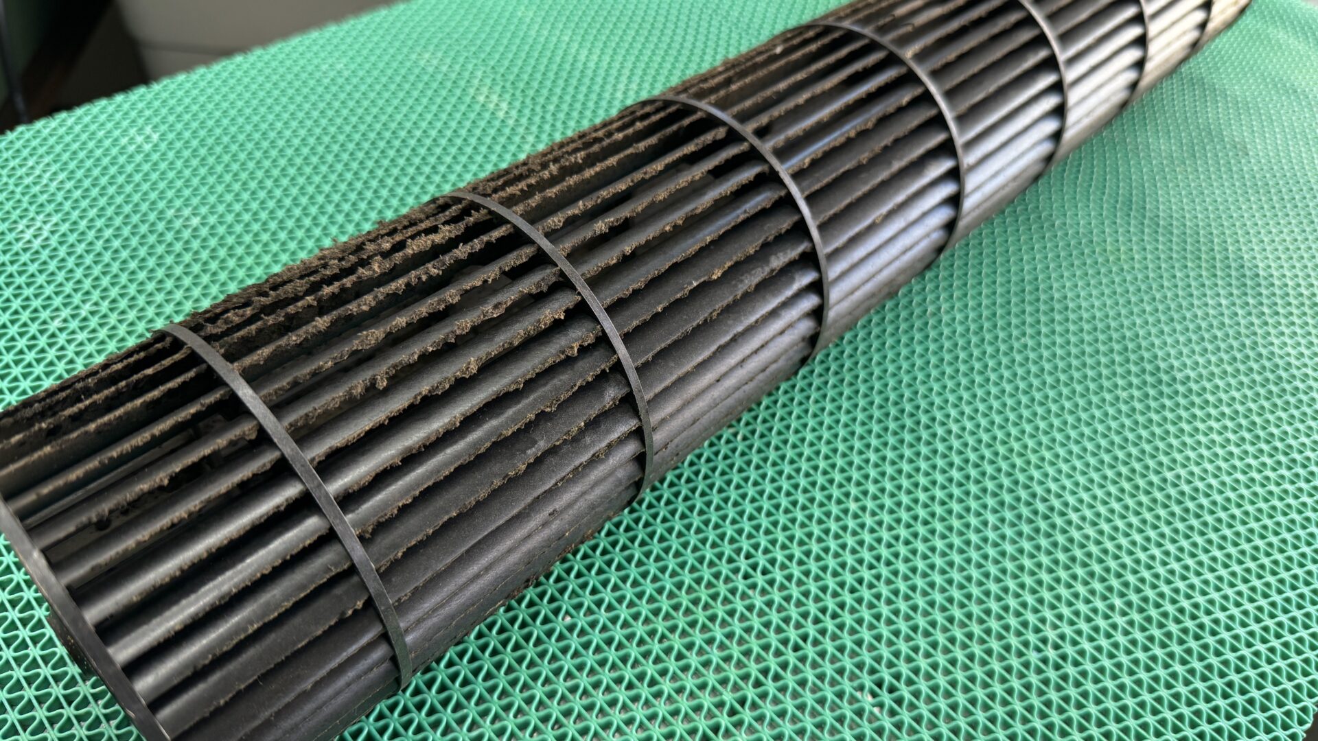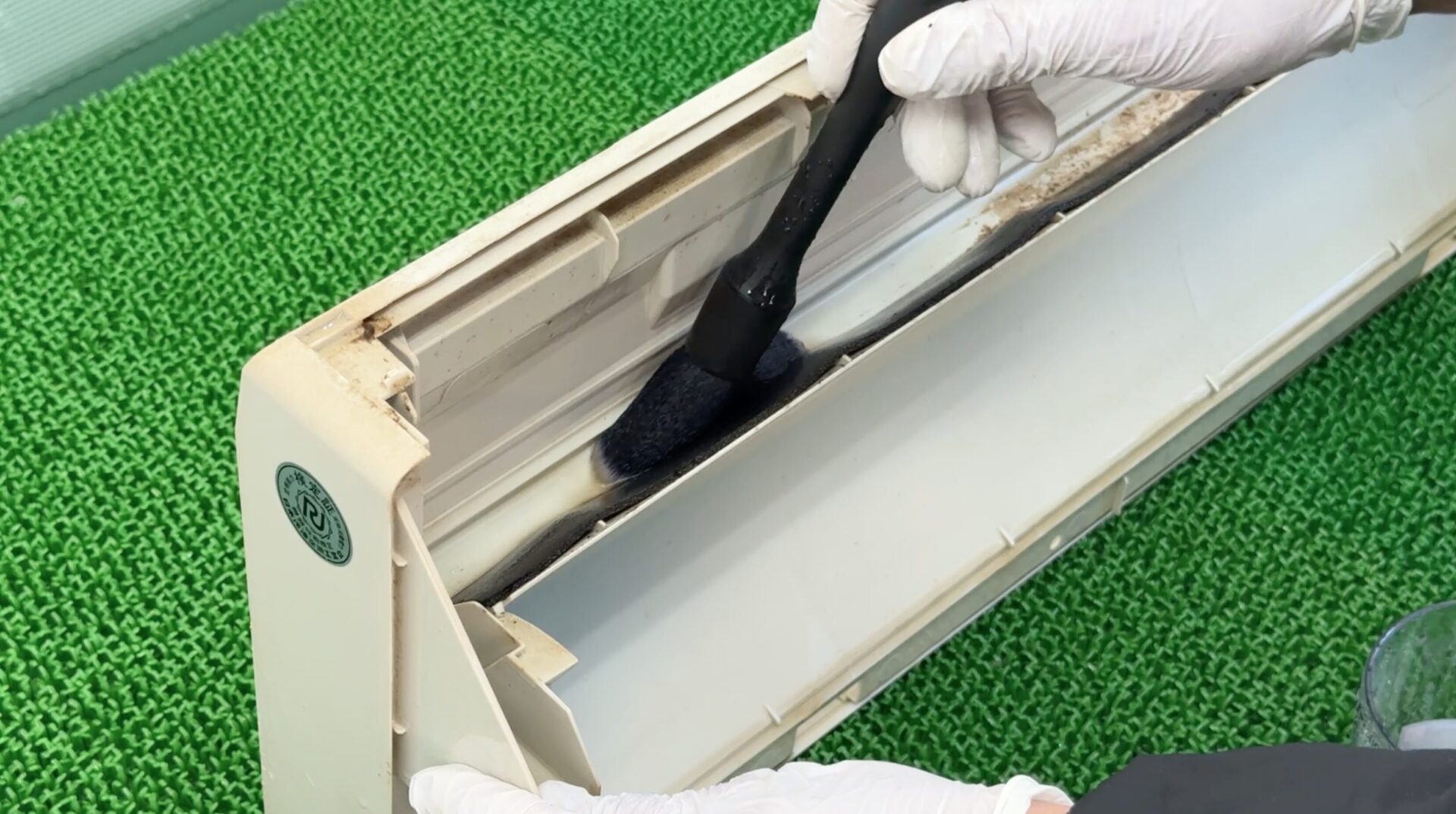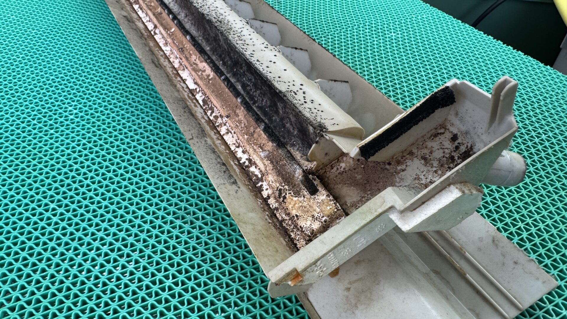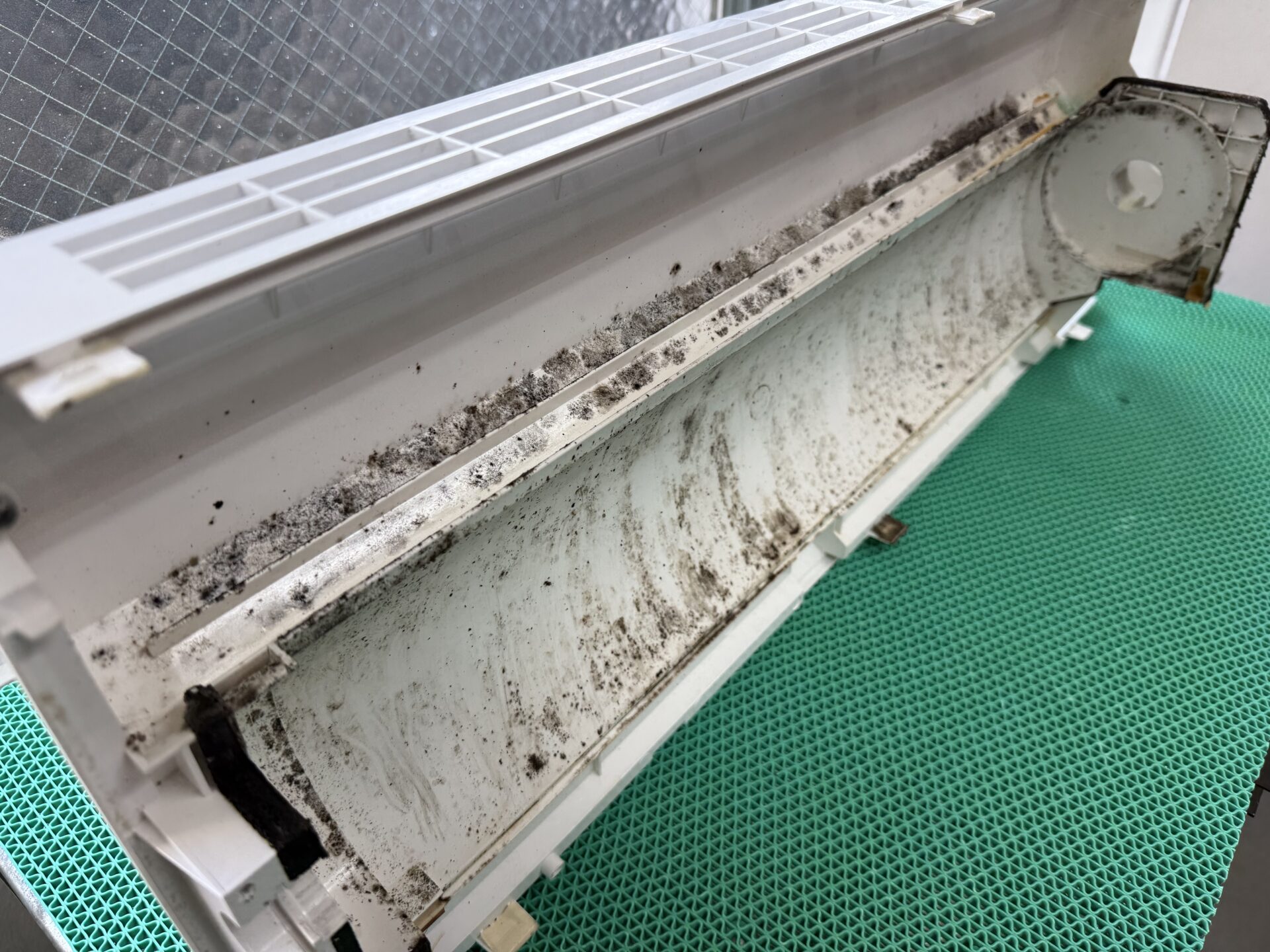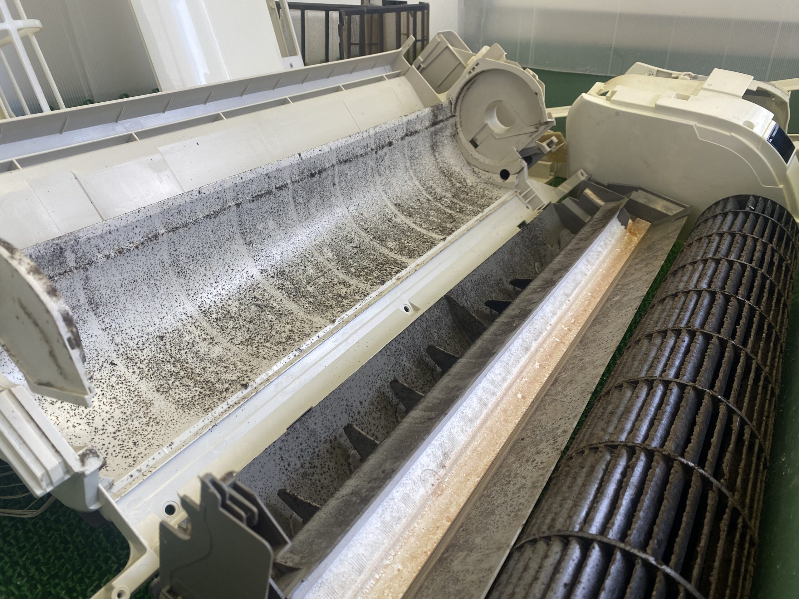 外からの洗浄だけでは、奥まで洗いきれず、3分の1のカビやホコリが残ったままに。