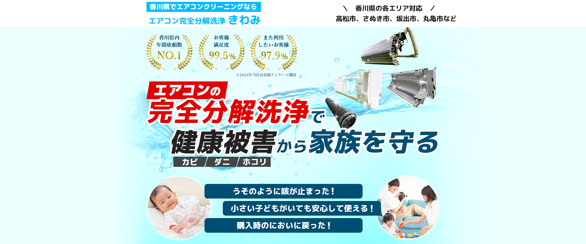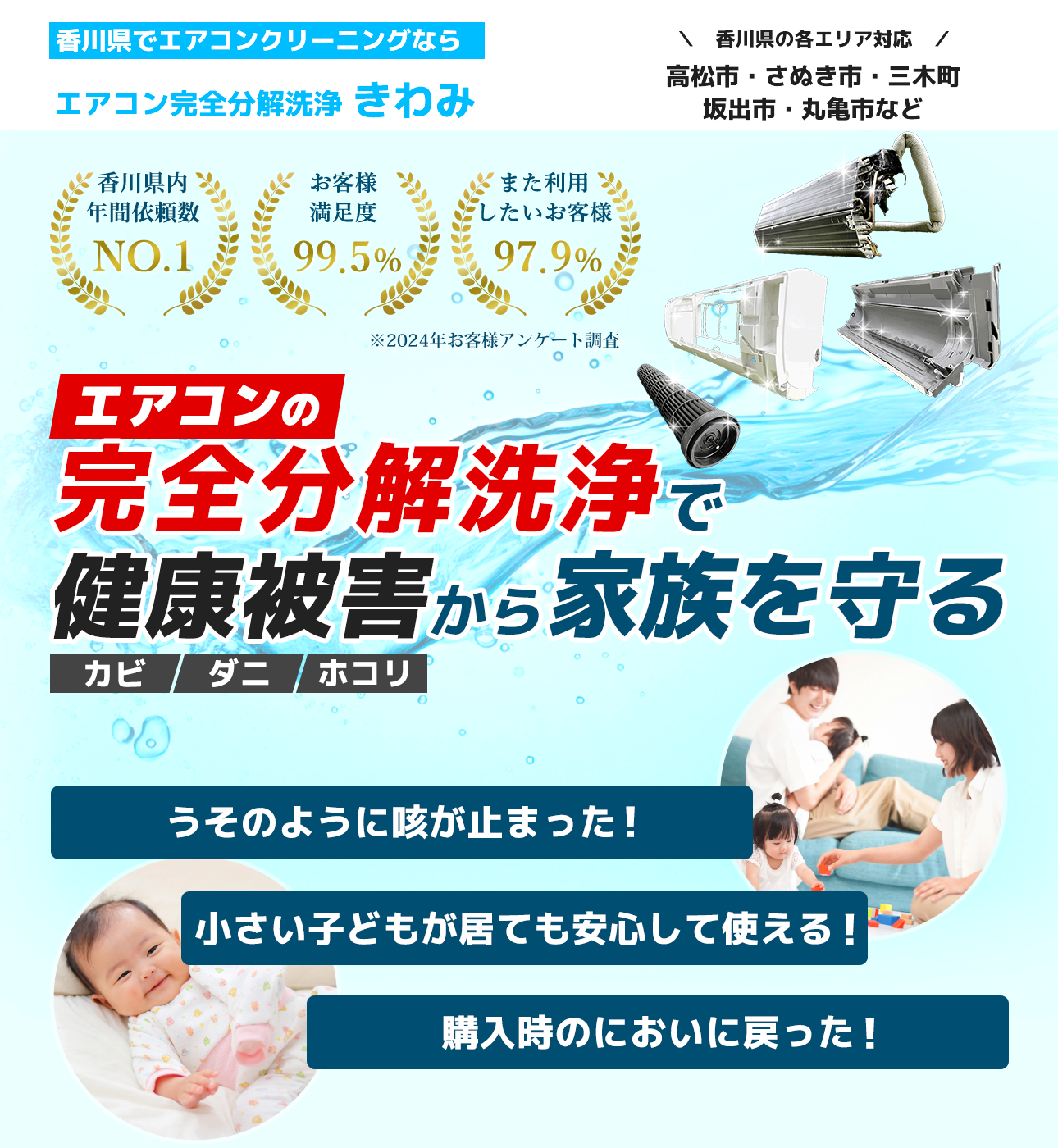 「エアコン完全分解洗浄きわみ」では ご家族・お子さま・ペットにも配慮した洗浄を重視しています。