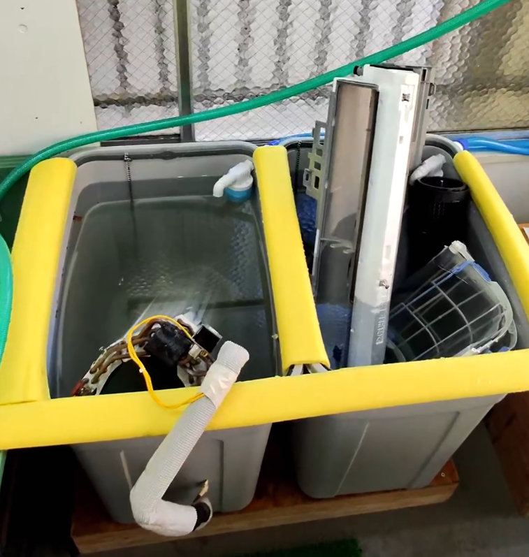 熱交換器から出る水を受けるパーツは、分解しないと洗浄できないので汚れが残ったままに。